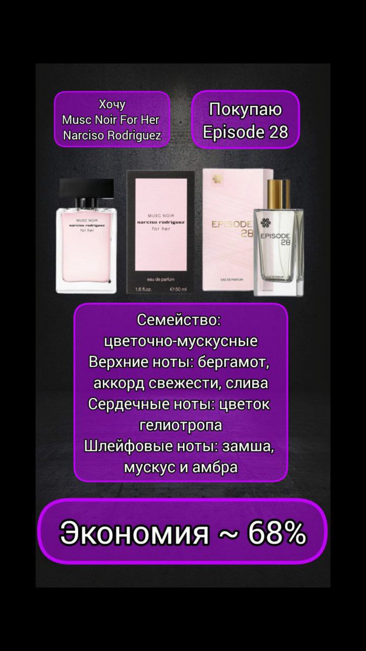 Episode 28, парфюмерная вода - Коллекция ароматов Ciel / Musc Noir For Her Narciso Rodriguez | Siberian Wellness | 🗑 |