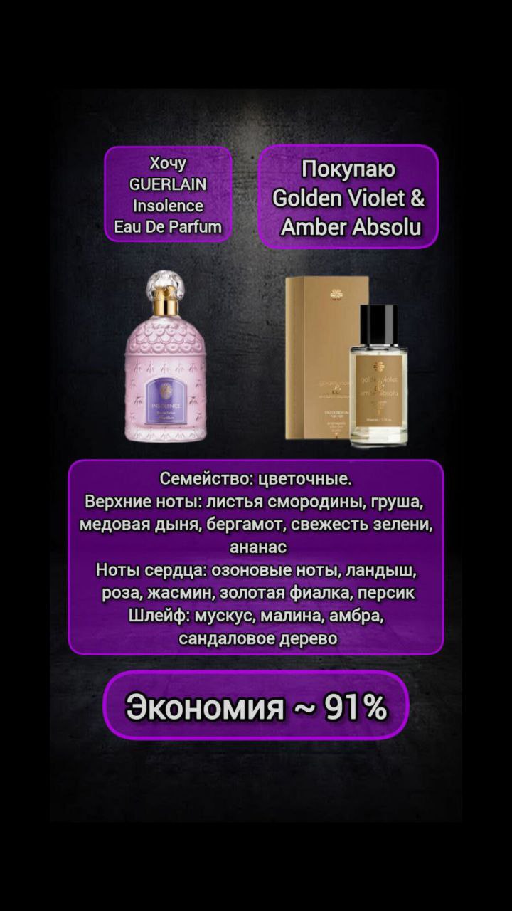 Golden Violet & Amber Absolu, парфюмерная вода - Aromapolis Olfactive Studio / Guerlain Insolence Eau De Parfum | Siberian Wellness | 🗑 |