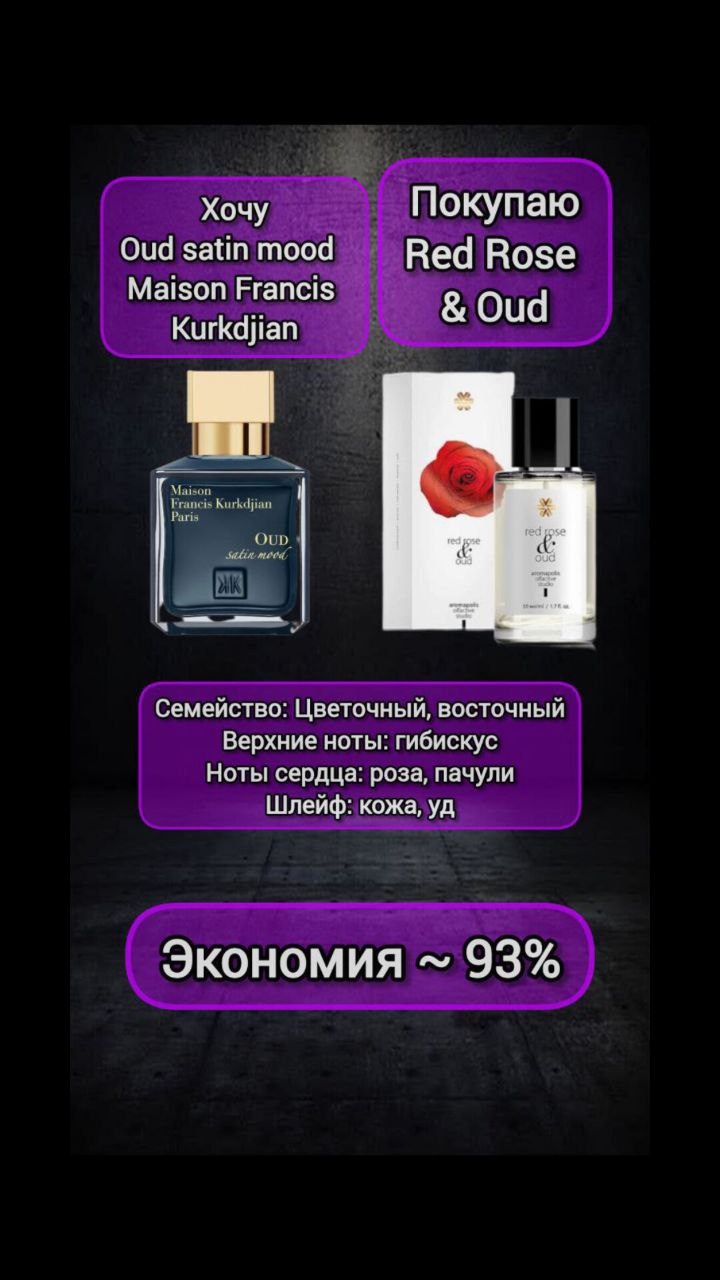 Red Rose & Oud, парфюмерная вода, Aromapolis Olfactive Studio / Maison Francis Kurkdjian Oud Satin Mood | Siberian Wellness | 🗑 |