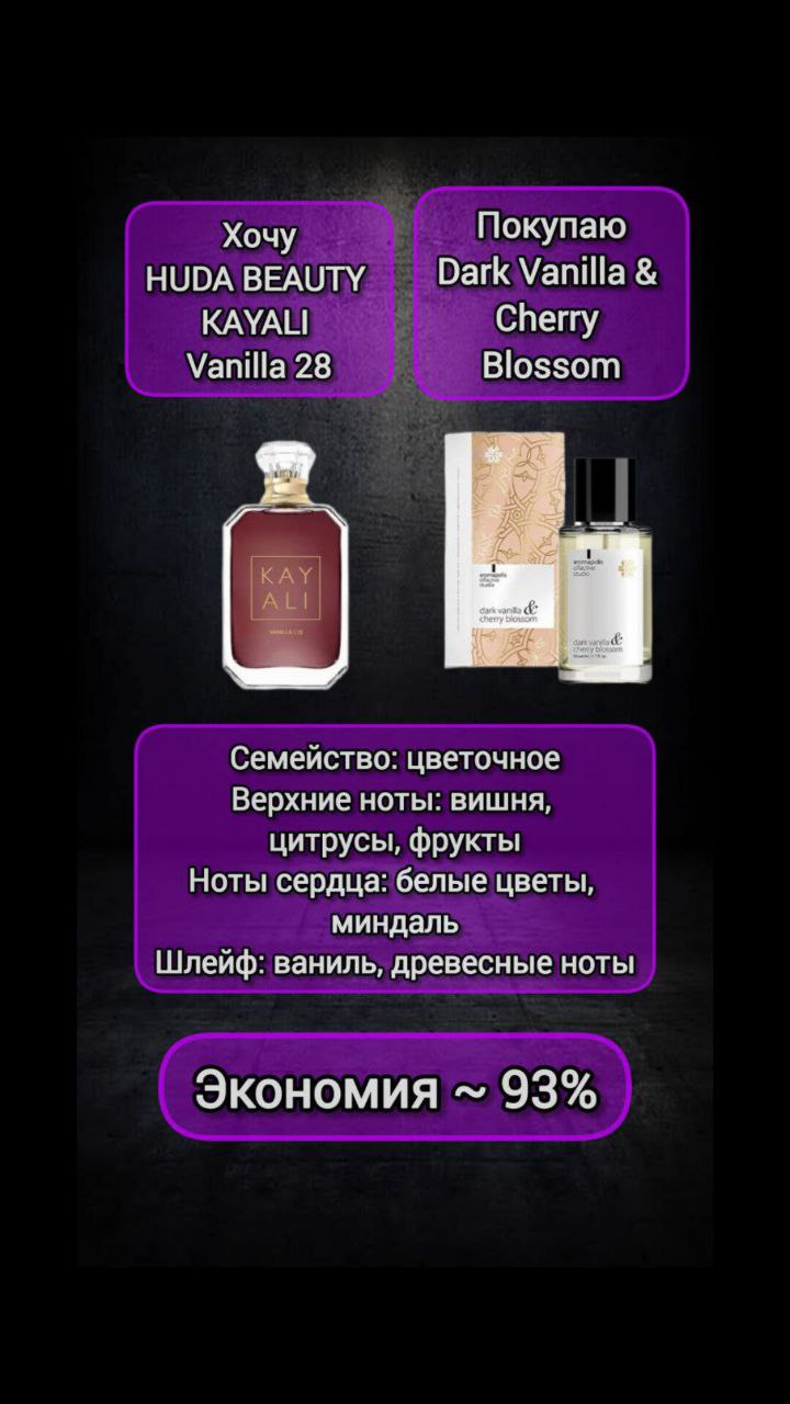 Dark Vanilla & Cherry Blossom, парфюмерная вода - Aromapolis Olfactive Studio / HUDA BEAUTY KAYALI Vanilla 28 | Siberian Wellness | 🗑 |