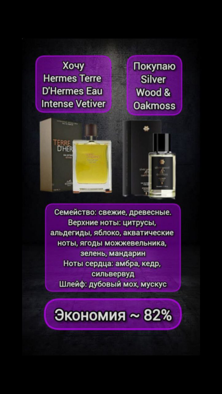 Silver Wood & Oakmoss, парфюмерная вода - Aromapolis Olfactive Studio / Hermes Terre D'Hermes Eau Intense Vetiver | Siberian Wellness | 🗑 |