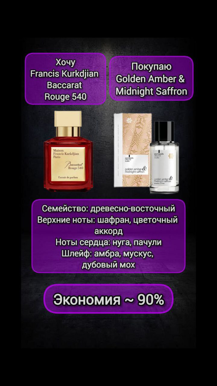 Golden Amber & Midnight Saffron, парфюмерная вода - Aromapolis Olfactive Studio / Maison Francis Kurkdjian Baccarat Rouge 540 | Siberian Wellness | 🗑 |