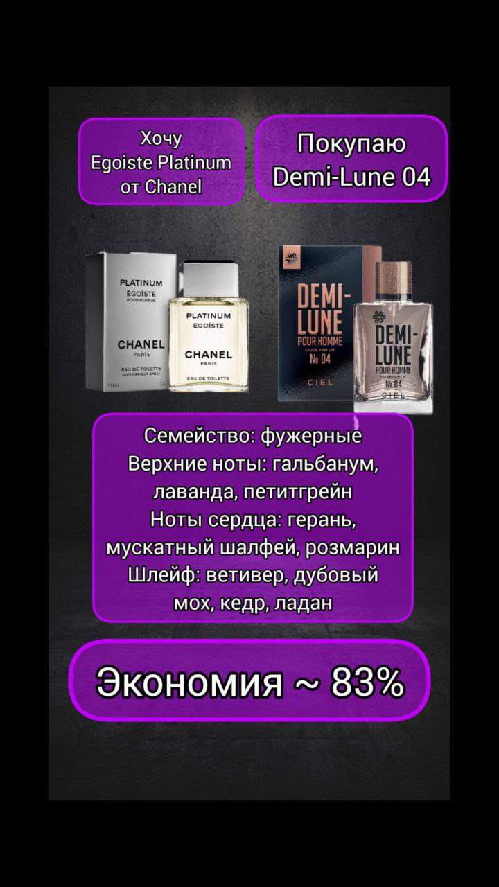 Demi-Lune № 04, парфюмерная вода для мужчин - Коллекция ароматов Ciel / Egoiste Platinum от Chanel | Siberian Wellness | 🗑 |