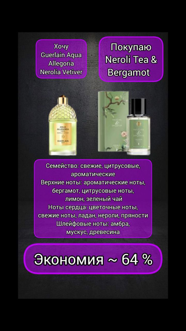 Парфюмерная вода Neroli Tea & Bergamot (Чай нероли и Бергамот), Aromapolis Olfactive Studio / Guerlain Aqua Allegoria Forte Nerolia Vetiver | Siberian Wellness | 🗑 |