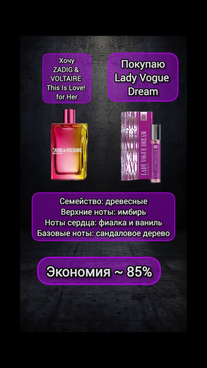 Lady Vogue Dream, парфюмерная вода, 20 мл - Коллекция ароматов Ciel / Zadig & Voltaire This Is Love! For Her | Siberian Wellness | 🗑 |