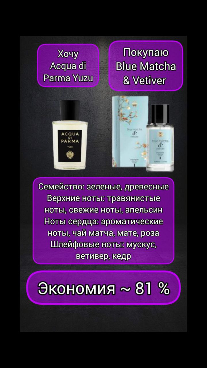 Парфюмерная вода Blue Matcha & Vetiver (Голубая матча и Ветивер), Aromapolis Olfactive Studio / Acqua di Parma Yuzu | Siberian Wellness | 🗑 |